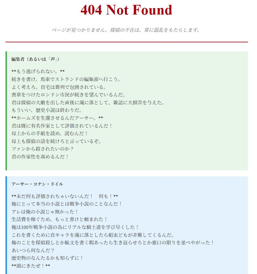 <p>ページが見つかりません。探偵の不在は、常に混乱をもたらします。</p>