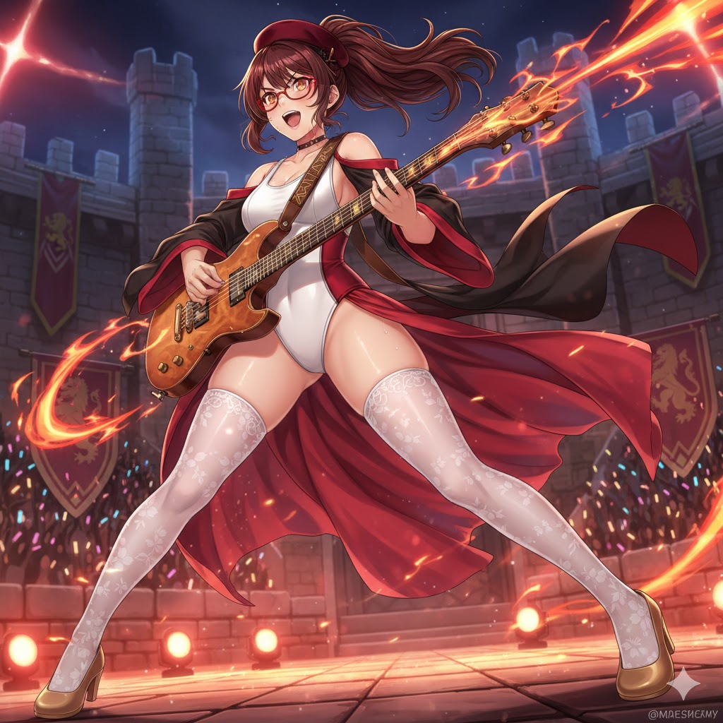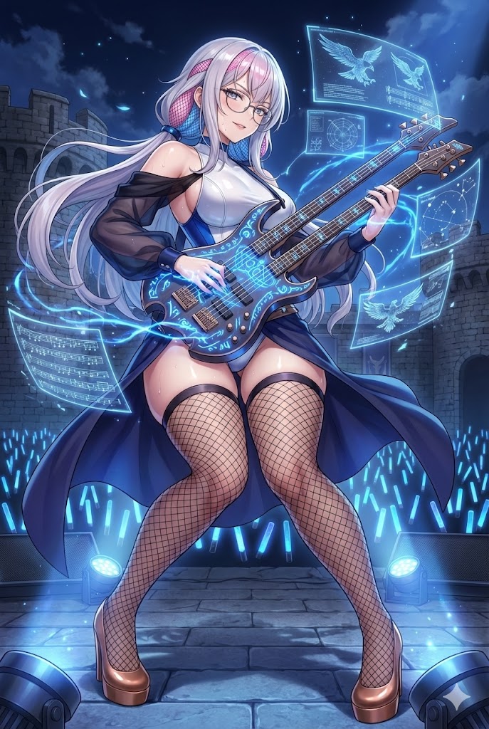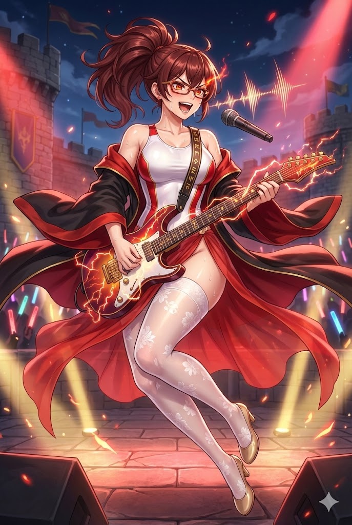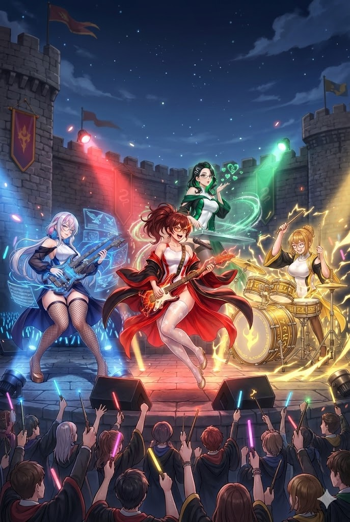 生成された4人のライブシーン。これを「1つのライブ会場で演奏させる」というのを指示してみます。