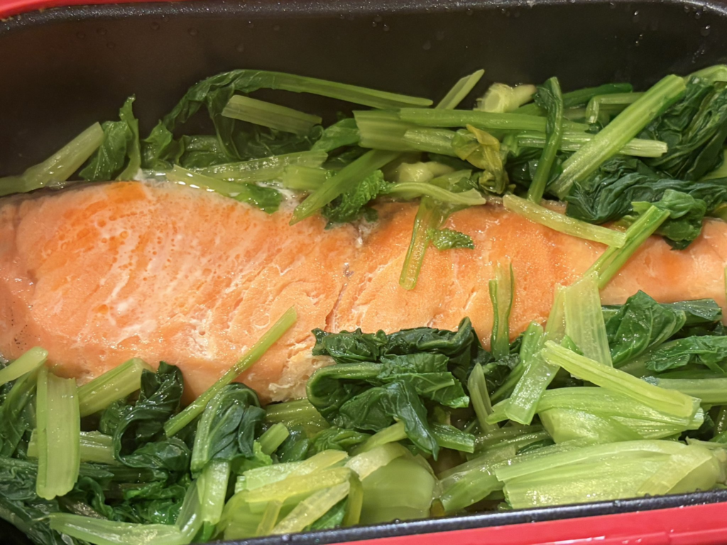 と判断。そこで、AIの力を借りながらも、冷凍庫にある食材を利用。冷凍の塩鮭を軸に組み立てていきます。