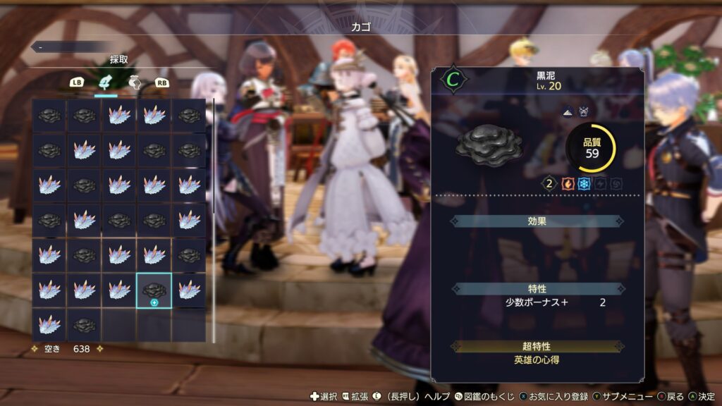 この超特性、採取レベルが低いゲーム序盤ほど手に入れやすく、(スキルツリーで上がった採取レベルが高い)ゲーム終盤はファストトラベルを繰り返してもなかなか出ないものになっています。