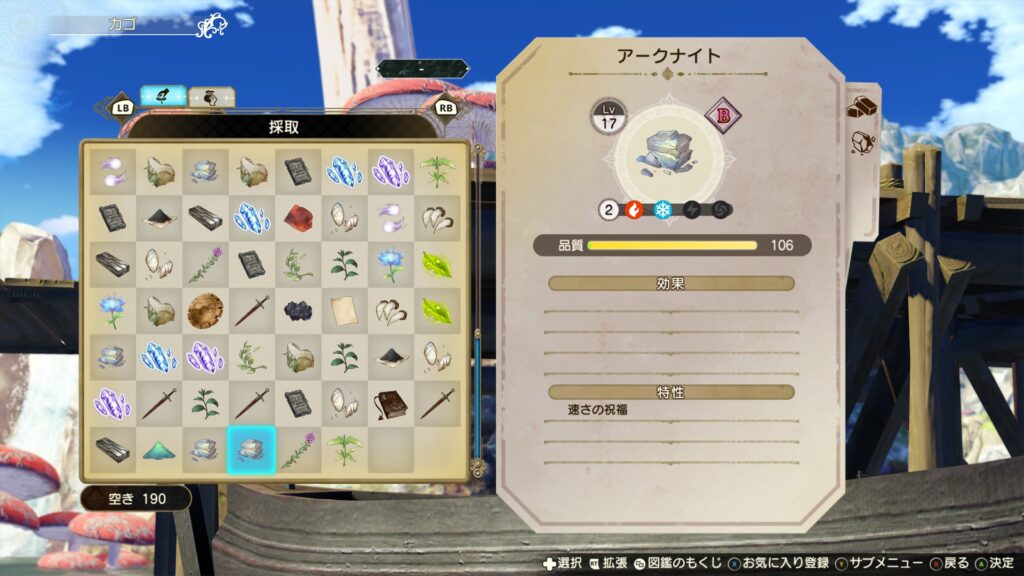 スタルチウム調合に必要な素材、アークナイト。レシピ調合で必要なのに属性値が1と序盤の難所となっています。