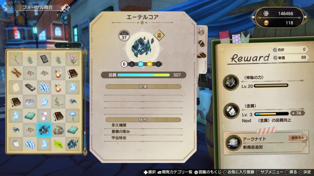 「エーテルコア」売却で解放されます。周回プレイを見据えるのであれば売却しておきましょう。