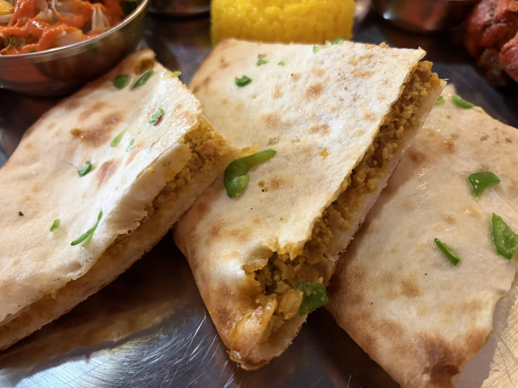 中にキーマをたっぷりと詰めた、それだけで食事になるという非常に罪深い味わい。