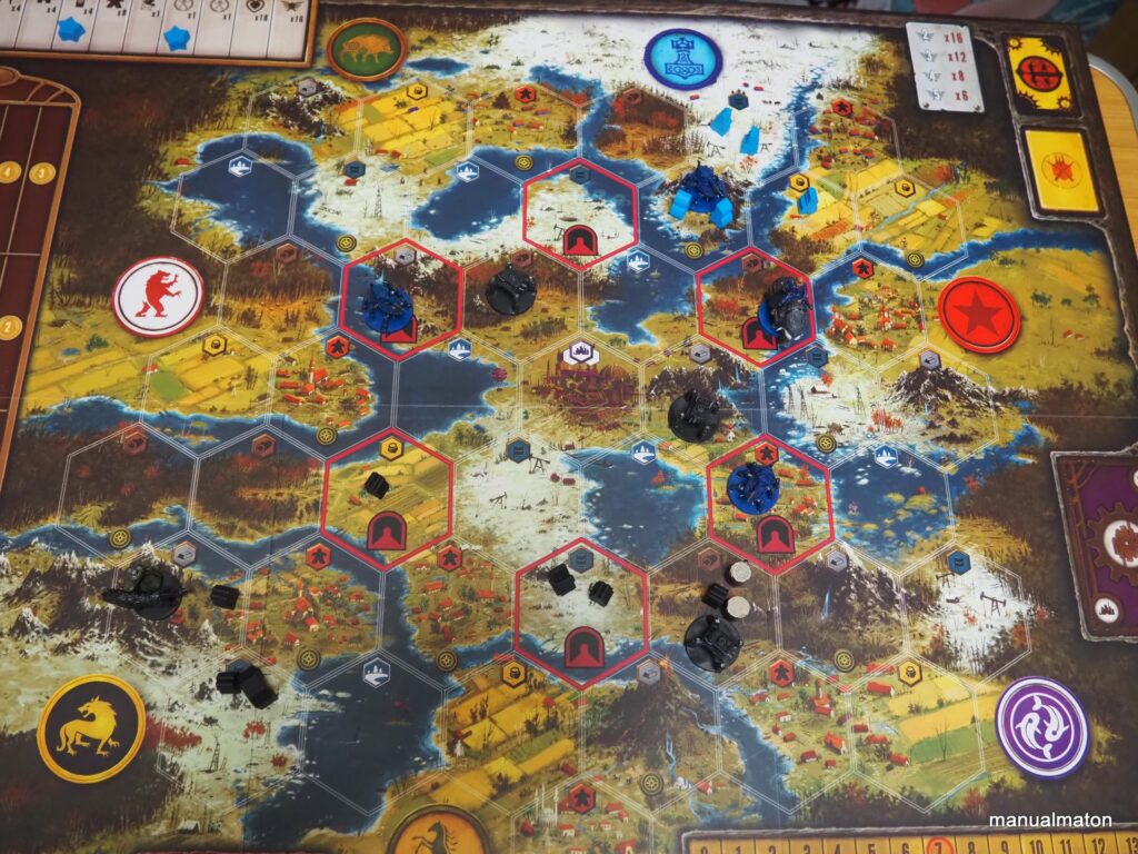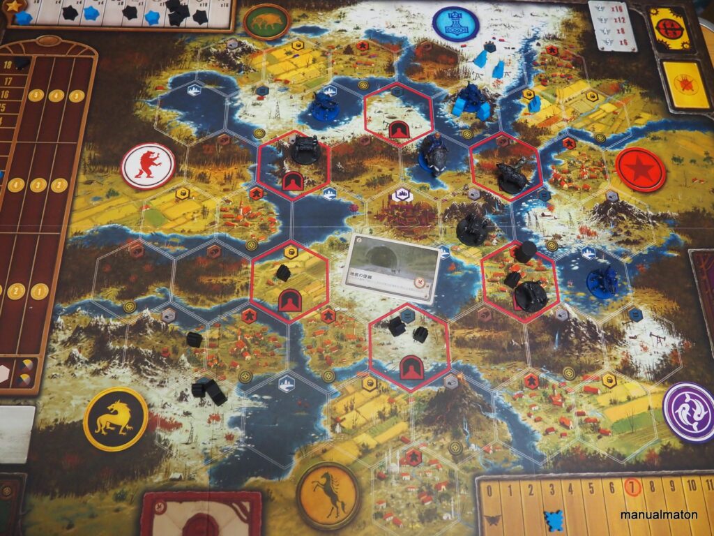 ボードゲーム『大鎌戦役』は星章を6つ獲得するとその瞬間にゲームが終わるという話をしました。そこから逆算し
