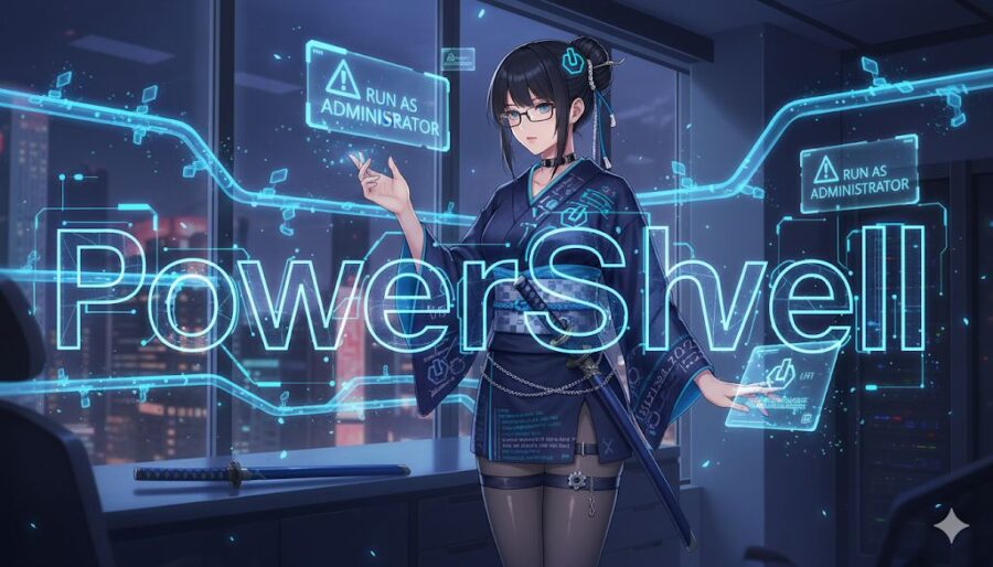 Japanese anime / manga style illustration, (maximum moe-style:1.7), (ultra-detailed:1.6), (dramatic contrast between traditional Japanese study room and holographic terminal commands:1.5), (a giant, aged scroll (Makimono) unrolled, with neon-green shell script flowing across its surface:1.6), (atmospheric illumination from the flowing script and floating "$ " prompts:1.4), (standard lens perspective:1.3), (smooth, natural visual composition:1.2), 16:9, widescreen
